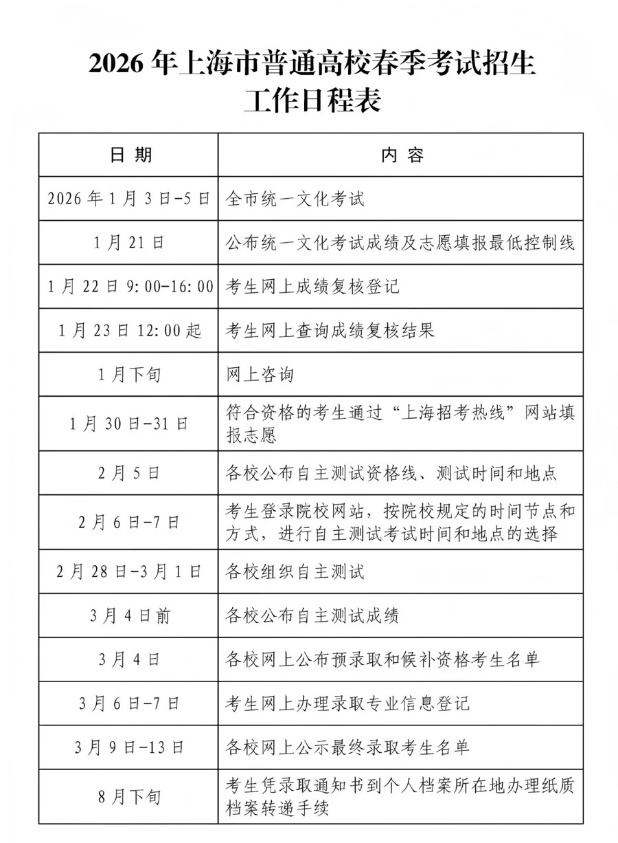 刚刚,上海市教委公布了2026年上海市普通高校春季考试招生(以下简称春考)26所试点院校的招生章程。