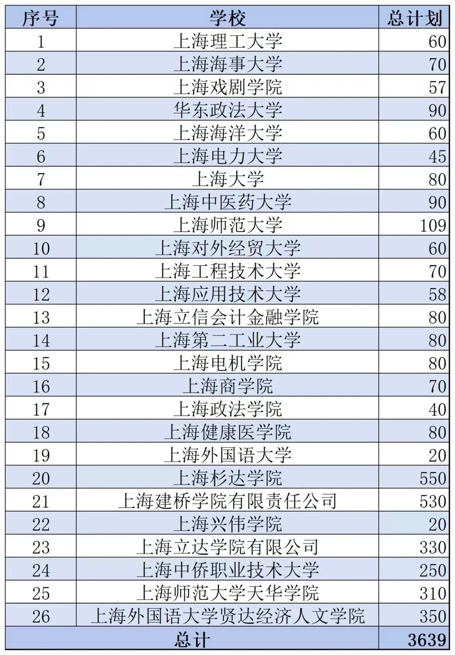 据统计,26所春考院校计划招生3639个。相比2025年的3539个计划,今年的春考招生计划增加了100个。